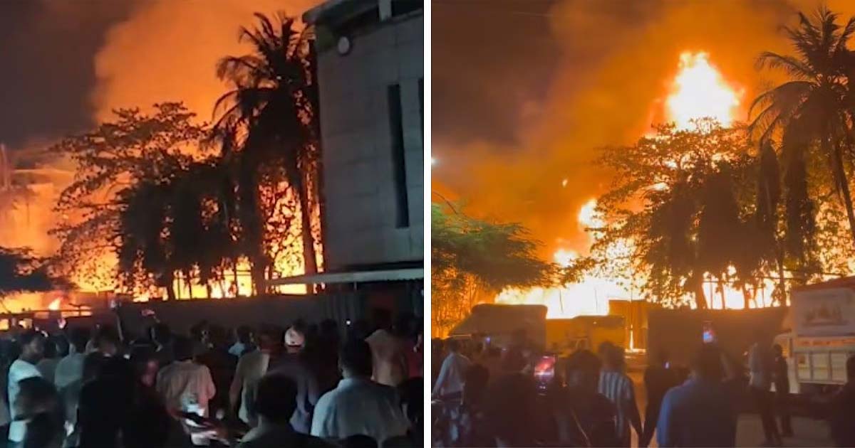 Mira Road: A major fire broke out at a godown near the Pleasant Park area in Mira Road on Tuesday night, triggering panic among residents as flames rapidly spread to nearby residential buildings.